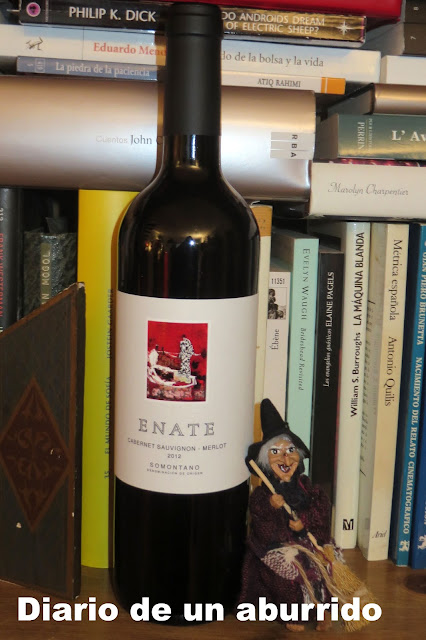 Como digo, no pude hacer fotos de las pinturas, pero hete aquí, Cide Hamete (que se note que hoy es el día del libro) que he encontrado en Internet una copia del original de la etiqueta de mi vino favorito de Enate. El pintor es Alberto Carrera Blecua: