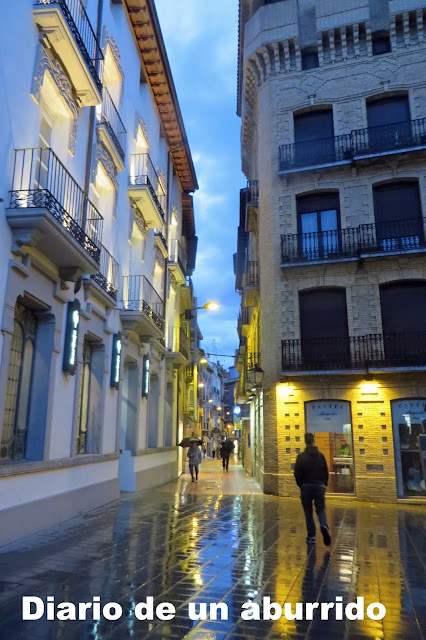 Como por la noche el hotel no tenía restaurante, me fuí al pueblo. Bastante solitario, bajo la lluvia: