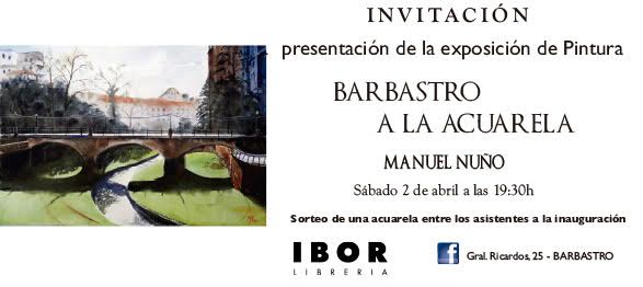 Para acabar, si pasáis por Barbastro, podéis también ir a visitar la exposición de acuarelas de Manuel Nuño, en la librería Ibor: