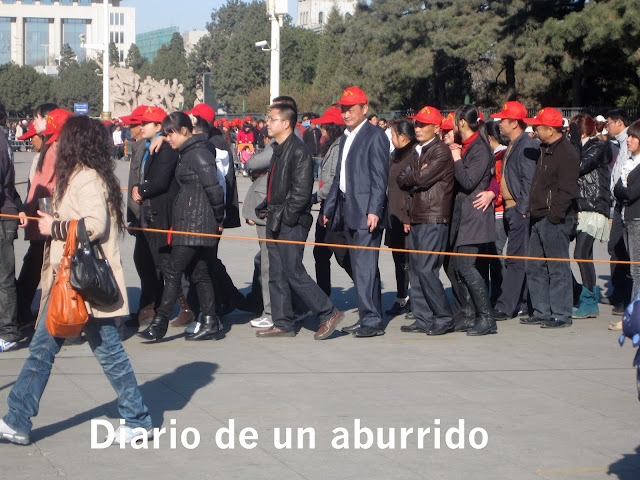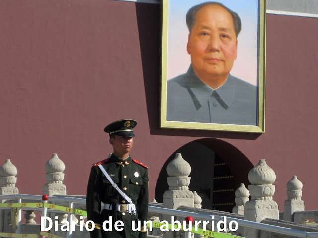 hasta la policía, etcétera etcétera. Eso sí, el Gran Timonel sigue presente en todas partes, como aquí, a la entrada de la Ciudad Prohibida. Pero, en fin, servidor de todos ustedes, ha visto una concentración tal de coches de lujo, tiendas de moda etc, en Pekín, como si fuera una sociedad super capitalista, Eso sí, bicicletas, pocas.