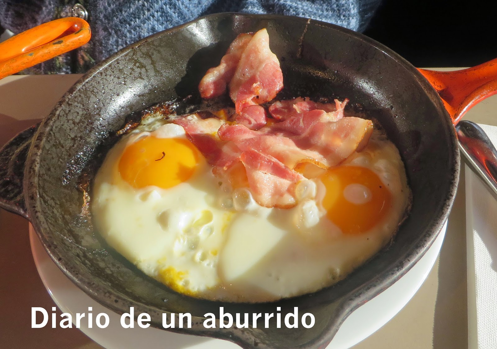 Pero mi pareja se empapuzó un desayuno inglés que manda narices. Los huevos con beicon no parecen demasiado: