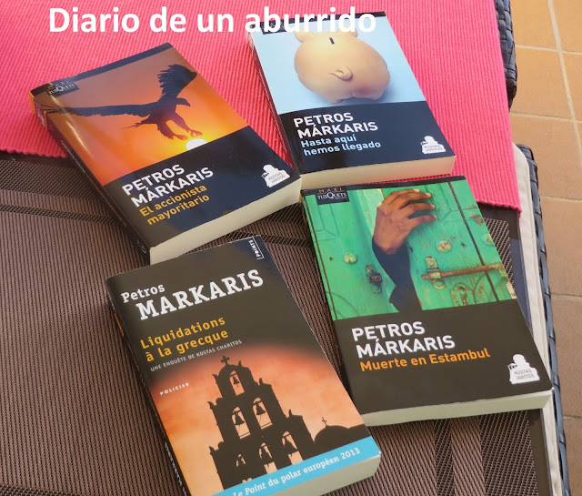 Lo he descubierto esta primavera-verano, pero me ha gustado tanto que ya me he leído casi todos los episodios del comisario Kostas Jaritos. Con una mala uva típica griega, el comisario -que está todos los días de bronca con su mujer, Adrianí-, que se lleva fatal con su jefe, pero que en el fondo todos se quieren, desvela misterios en los que siempre hay un componente social: el problema de los emigrantes albaneses en Grecia, el de las minorías griegas en Turquía, etc. Os recomiendo sobre todo "liquidación final" (yo lo he leído en la traducción francesa que me ha gustado menos porque lima un poco la mala leche). Todo pasa en 2010. Kostas se ha comprado un Seat porque, según él, hay que comprar a un país hermano que está sufriendo la tenaza de los del norte. Naturalmente, hay un capítulo dedicado a la final del campeonato del mundo en la que todos -lógicamente- apoyan a España frente a los salvajes holandeses. El criminal, finalmente, es alguien que asesinaba banqueros y gente así. No digo yo que haya que imitarlo, dios me libre, pero denota el estado de espíritu de los griegos.