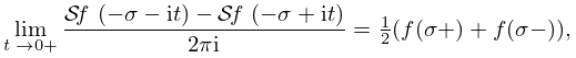 Suppose the integral (1.14.32) is absolutely convergent on the line and is of bounded variation in a neighborhood of . Then