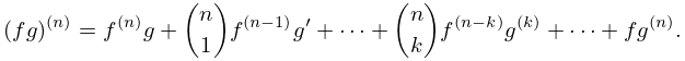 1.4.12 (fg)(n)=f(n)g+(n1)f(n1)g++(nk)f(nk)g(k)++fg(n).