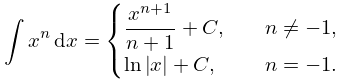 1.4.17 xndx={xn+1n+1+C,n1,ln|x|+C,n=1.