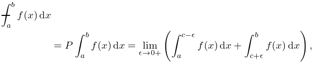 1.4.24 abf(x)dx=𝑃abf(x)dx=limϵ0+(acϵf(x)dx+c+ϵbf(x)dx),