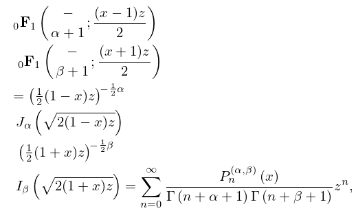 The -radii of convergence will depend on , and in first instance we will assume for Jacobi, ultraspherical, Chebyshev and Legendre, for Laguerre, and for Hermite. With the notation of §§10.2(ii), 10.25(ii), 15.2, and 16.2,