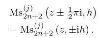 Ms2n+2(j)(z±12πi,h) =Ms2n+2(j)(z,±ih).
