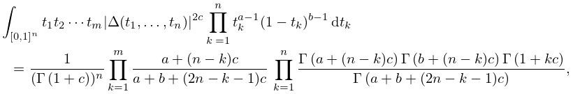 provided that ℜa, ℜb>0, ℜc>−min(1/n,ℜa/(n−1),ℜb/(n−1)).