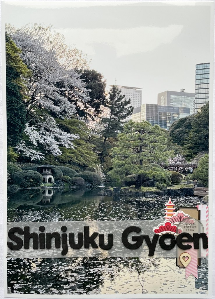 Shinjuku Gyoen var utan tvekan det som jag hade störst problem med att välja ut foton i från. Annars brukar jag vara ganska bra på att gallra bland mina bilder och bara ta med de som antingen berättar en historia eller som är extra speciella på något sätt, men från detta tillfälle fanns det så många fina, både sådana jag själv tagit och som mina vänner tagit. Så, det blev flera sidor bara med foton och fillerkort.