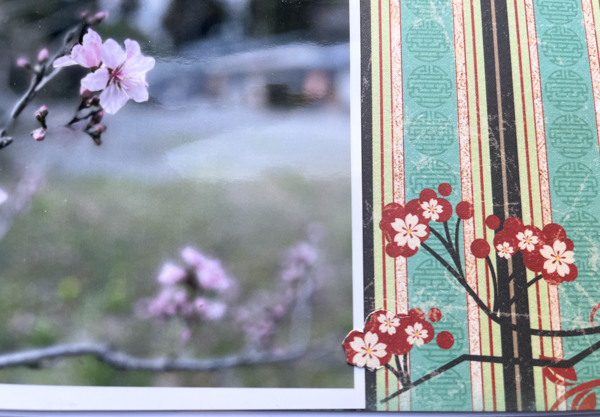 På vänstra sidan, under två av de mönstrade pappren, sitter det flip-fickor. Vid den här tiden blev det finare väder och betydligt varmare, och körsbärsblommorna slog ut helt och hållet.