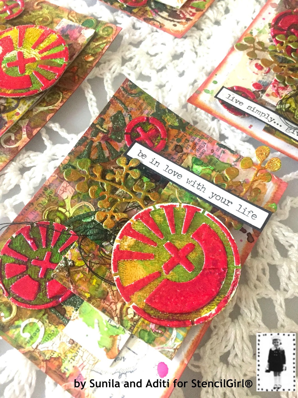 We’re sharing our recent mixed media layout with you all today. We’ve used our favourite Lindy’s Sprays to build our background. We have used Dusty Attic Chipboard and some die cuts with flowers for our layering.