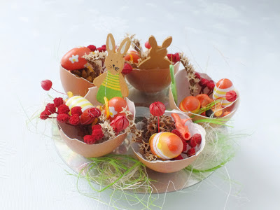 Kálmán Adél csodálatos terítékei és vidám húsvéti kompozíciói gyönyörködtetik szemünket ahhoz, hogy továbblapozva konyhai alapanyagokkal (magvak), és papírcsíkokkal (quilling) díszített húsvéti tojások csodaszép mintáit és leírásait találjuk meg.