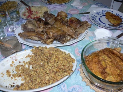 Főfogásnak pulykasült és bécsi szelet volt, körítve egy isteni, házi tarhonyával. Melléje pikáns sarvalt káposztát ettünk.
