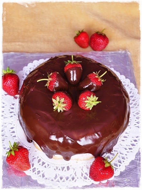 Kolléganőmnek készítettem ezt a tortát. S bár a végeredmény kinézetre eléggé jó lett, ízre pedig állítólag fennséges volt, az elkészültét a totális csőd kifejezéssel lehetne a leginkább leírni. Minden rendben volt mindaddig, amíg a tortát ki nem akartam borítani a formából. Kiborulni éppenséggel kiborult, s ha azonnali fogyasztásra kellett volna, tökéletes is lett volna, de tudtam: azzal az állaggal semmiképpen sem bírja ki a kb. 1 órás buszon utaztatást, pláne nem olyan melegben, mint amilyen aznap volt. Hajnali 5 volt, muszáj volt megoldást találnom minél hamarabb, 7-kor indultam dolgozni, de addig a családot is útra kellett tenni.... Így aztán torta vissza a formába, piskótát leszedni a talpáról: a frász kerülgetett, amikor össze-vissza tört. Zselatint feloldani, belekeverni a masszába, ismét formába simítani, majd idő híján babapiskótát használni a kakaós, fruktózos piskóta helyett. Elmenni dolgozni, közben idegeskedni: vajon, jó lesz-e? Hazamenni fél 2-kor, fogadni az ablak alatt váró vendégeket, fél 3-kor kivenni a tortát a hűtőből, és izgulni - jajjjjjjj, mi lesz? De a torta áll, kemény, szóval kár volt idegeskedni. Sietni, csokit, tejszínt olvasztani, epret mártani bele, majd a tortára önteni, simítani - jáááááj, megolvasztja!, a francba, igen lefolyt! - hamar, a fagyasztó egyik polcáról mindent kidobigálni, tortát beletenni, és várni egy kicsit. Huhh, nem folyt el mégsem.... 10 perc után epret rátenni, rohammenetben kattintani kettőt, és reszkető kézzel belehelyezni a tortahordozó kartonba. Indulni otthonról, beülni és tortát elhelyezni a min. 60 fokos autóban, és tovább idegeskedni, hogy rendben megérkezik-e a célszemélyhez. Az összeomlás szélén - a szó szoros értelmében reszketve - bemenni a munkahely kapuján, ahol javában zajlanak az előkészületek a kézműves gyereknapi tevékenységekhez, sőt, már egy csomó gyerek és szülő is a helyszínen - és végigvágtatni közöttük a kérdő tekintetek közepette. Kolléganőm kérdéseire - mi a baj, mi van, te, mi történt, mondj már valamit!!!! - sírva fakadni, és megmutatni azt a kis "nyomorultat", ami ennyi gyötrelmet volt képes okozni. A kitörő meglepődés és jókedv, illetve a többiek elismerő szavai után pedig kissé megnyugodni, és hirtelen pálfordulással ismét elkezdeni a munkára koncentrálni. Tortát hűtőbe betenni, majd rendezvény után lefotózni. Végül pedig nem győzni várni a hívást, amiben megmondják, hogy épen-egészségesen kibírta-e a buszozást, és hogy tetszett-e az ünnepeltnek is... És igen, nagyon tetszett, ízlett, nem akarták hinni, hogy nem cukrászdai. Mindenesetre, tortával így még nem jártam... És a továbbiakban sem szeretnék...