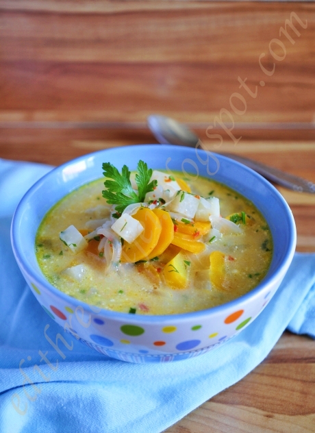összeforgatjuk. A kenyérkockákat csak tálalás előtt keverjük a