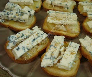 CANAPE DE BRIOCHE CON PERA Y QUESO AZUL