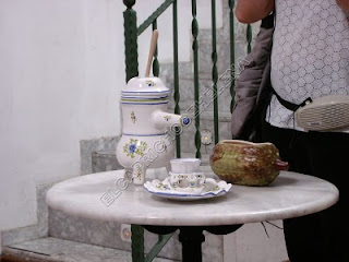Ahí también podéis ver una de las antiguas chocolateras y taza donde se tomaba el chocolate antes.