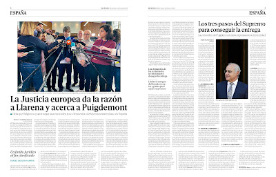 Un interés que está en la estructura porque lo de poner fondos de color a las páginas es un recurso fácil para distinguirlas pero poco más. Es la estructura. Utilizando una maquetación que podemos encontrar de forma más habitual en las revistas, la página se divide no en las cinco columnas del tabloide clásico, las que utiliza la primera parte del periódico, o en las seis que utilizaba Rodrigo Sánchez para tener más combinaciones de diseño, sino en diez. ¿Diez columnas en ese tamaño de papel? Sí, y no. Es una manera de dividir el espacio para utilizarlo de forma dinámica y que un tema se maquete utilizando bloques de esas columnas de tres en tres, o una parte en tres columnas y otra en dos, dejando una de esas estrechas columnas en blanco... "columna de fuga", dicen, ya saben cómo las gastamos con la terminología. Con un resultado realmente bueno, fruto de la inteligencia, la experiencia y el talento de quienes lo están llevando a cabo en el día a día. Y no es fácil.