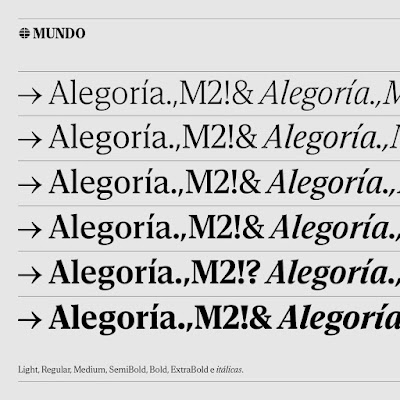 Tipografía Mundo con sus distintos pesos, diseñada en exclusiva para el periódico por Íñigo Jerez, uno de los pilares fundamentales de este último rediseño.