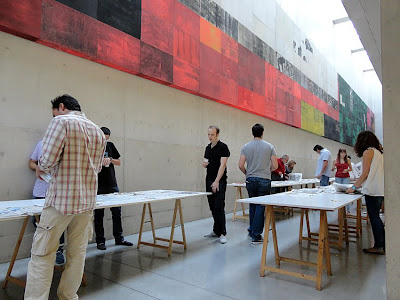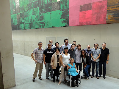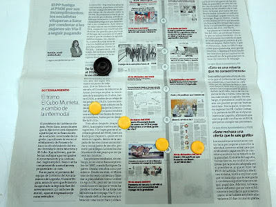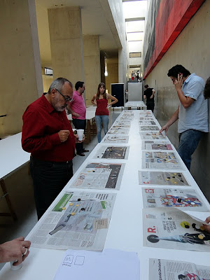 En el turno de preguntas, Pedro Pérez, organizador de las Jornadas, lanzó el guante de si "se están arrevistando o no los periódicos, y si es necesario o no que lo hagan", cuestión de máximo interés, muy oportuna en estos momentos y que por ello generó un interesantísimo y animado debate en el que mientras Mario Benito cuestionó el arrevistamiento de los periódicos "ya que son productos fundamentalmente para leer... eso sí, en un país en el que casi nadie lee, y que diseñamos cada vez con menos texto", Javier Vidal expuso que pueden "arrevistarse en cuanto al uso de las imágenes, aprovechando así su edición gráfica". El primer ponente de las Jornadas, Francisco Ramírez, intervino para resaltar que "se están arrevistando, y hacen bien en hacerlo, si tienen como modelo a las revistas semanales, que nada tienen que ver con otras; deben arrevistarse aunque sin llegar a extremos como el del diario I". Rafael Álvaro, diseñador periodístico con el que coincidimos hace tiempo en el diario La Información de Madrid y con una dilatada experiencia tanto en periódicos como en revistas intentó buscar un punto medio: "pues depende de cómo lo hagan y sobre todo qué periódico lo haga. ABC se equivocó arrevistándose hace unos años y han tenido ahora que dar marcha atrás; mientras que en Público se equivocarían si dejaran de arrevistarse".