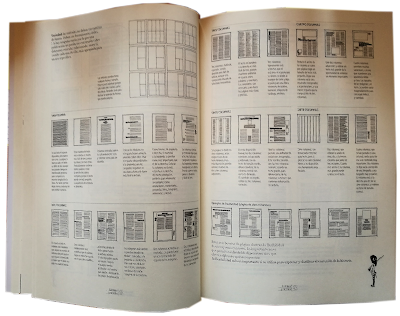 Y sobre márgenes, espaciados, contrastes y unificación, simetría, retículas, titulares y entradillas, pies de ilustración (le da mucha importancia a este elemento habitualmente despreciado), gráficos, diagramas, filetes, marcos, sombras, portadas, señales y cintillos, sumarios, color... Está incluso aquello de los "dos niveles de lectura" que algún ilustre fusilador de páginas presentaba como idea suya original, cuando este texto no estaba publicado en España y lo conocían sólo los muy iniciados, siendo también idea fusilada como se puede consulta ahora en la página 9 de un libro en el que... ¡está todo! Contado y dibujado de la manera más sencilla y directa que pueda hacerse. Está todo el diseño diseñado en este libro.