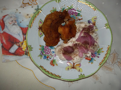 Rántott ponty lila hagymás majonézes burgonyasalátával