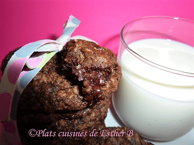 J’ai toujours dégusté ces biscuits réchauffés quelques secondes au micro-ondes avec un grand verre de lait! Ils sont tendres, chocolatés, riches, enfin tout pour vous sucrer le bec!!