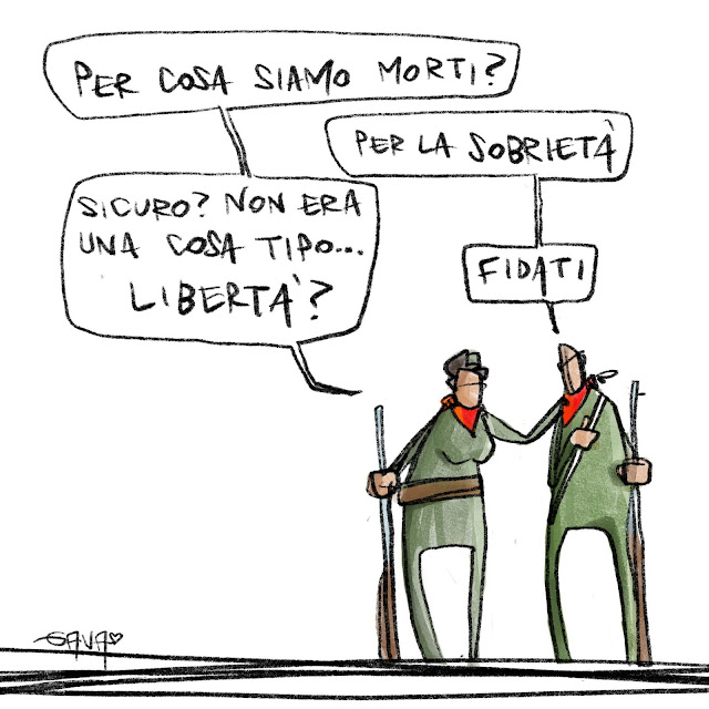 “L'umorismo grafico sui social è già in parte inquinato dalla volgarità e dalla cattiva qualità o banalità delle battute. Quell'umorismo che invece fa del vero giornalismo disegnato, con commenti grafici che sono autentici e propri articoli, è sempre più minacciato, controllato e stretto da lacci di ogni tipo. Il trumpismo è una visione a senso unico, è come un virus che contagia i politici più conservatori, e in cui la libera opinione è vista come un pericolo da eliminare”.