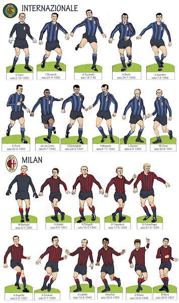 Derby Milan Inter. Tavola con figurine anni '60 per il Corriere della Sera del 10 gennaio 2012