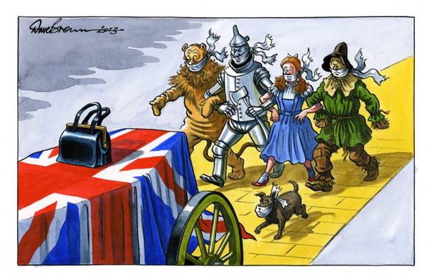 Nota: Il 17 aprile a Londra si sono tenuti i funerali di Margaret Thatcher. L'ex premier, deceduta l'8 aprile, non avrà le esequie di stato ma gli onori militari in una cerimonia nella cattedrale di St. Paul.