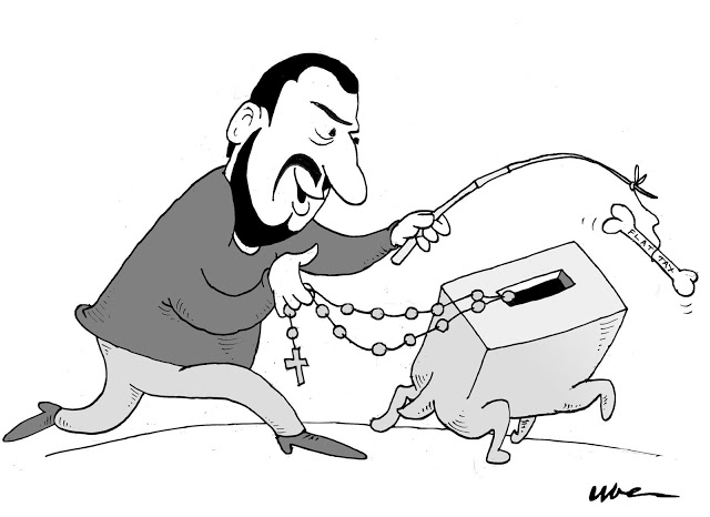 In piazza Duomo a Milano Salvini ritorna a brandire il Rosario e a blandire gli elettori cattolici enumerando tutti i possibili santi in Paradiso che sarebbero disponibili ad assumersi la protezione della nuova Europa sovranista.