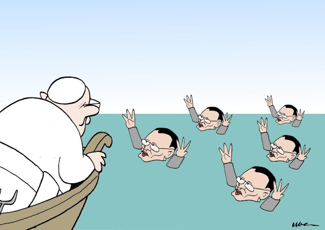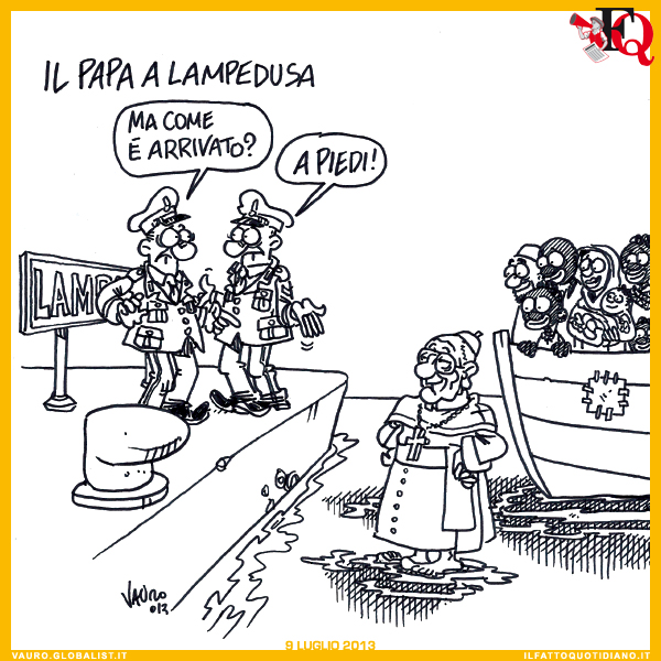 Oggi visita storica a Lampedusa. Papa Francesco vuole rammentare a tutto il mondo la necessità di solidarietà, non solo della Chiesa, verso tutti gli uomini costretti da condizioni inumane, causate dalle guerre e da ingiustizie economiche, a rischiare la vita e spesso a lasciarcela, per poter sperare in un futuro anche solo leggermente migliore. Quanti Magdi Allam tra loro? Gianfranco Uber |