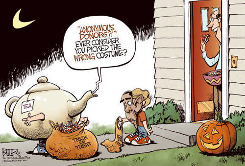 Dave Brown - Qui Halloween è stato 'personalizzato... il 'trick or treat' è stato cambiato in' trucco o tè '(come in Tea Party).(The Independent on Sunday.)