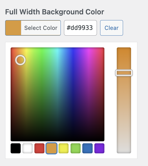 The Feast Full Width group block can be matched to your brand color site-wide.