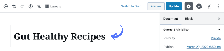 We recommend using a short, user-first description (similar to a "tagline") as the homepage h1. To do this, simply click on the post title and edit it.