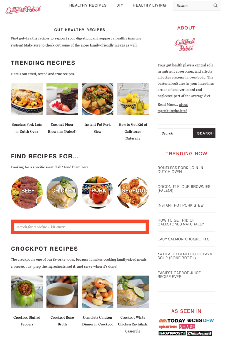 For sites with high volumes of social media or email subscribers, the "recent recipes" section can be moved up higher on the page. This is because returning users may be landing on the homepage looking for the newest recipes