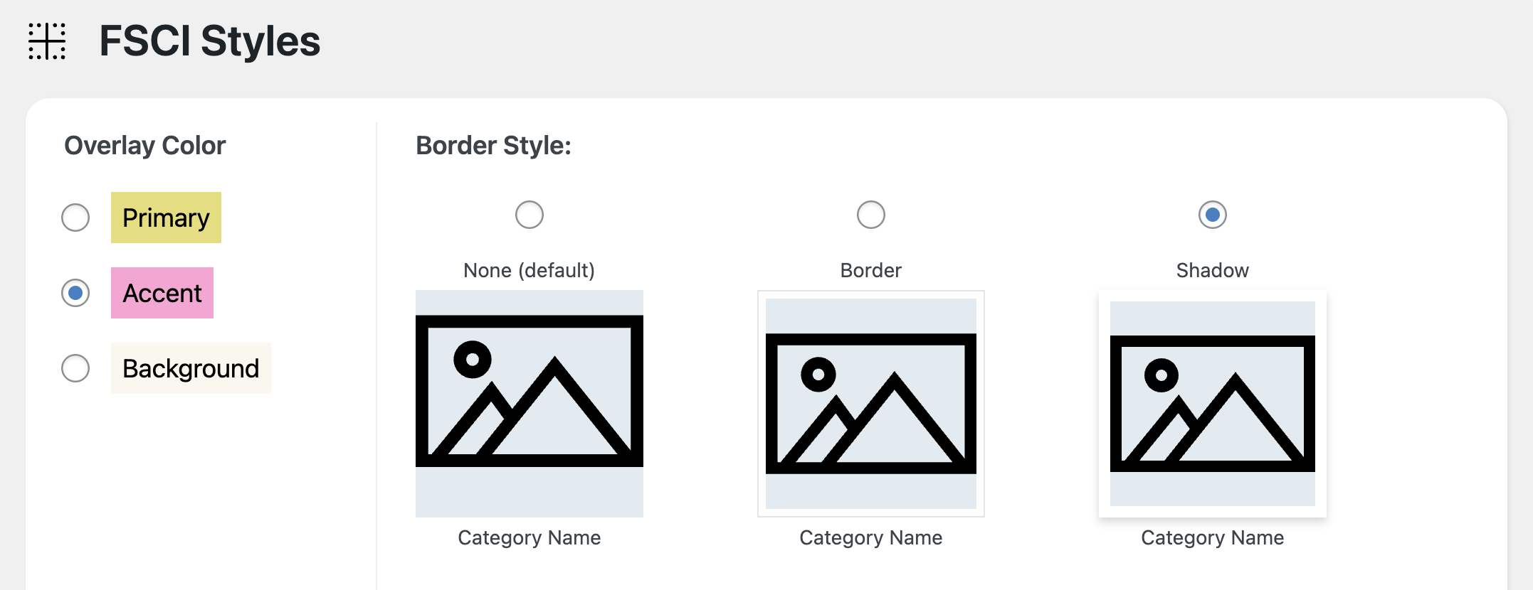 To show the category title inside a box, use the "Title Overlay" checkbox. For square images, the title will appear in a gray box below the image. For circle images, it will be overlaid on top