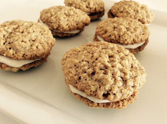 Estas bolachas de aveia e baunilha por sim só já são verdadeiramente deliciosas, daquelas pegajosas por dentro e crocantes por fora, mas o seu recheio de iogurte torna-as verdadeiramente irresistíveis.