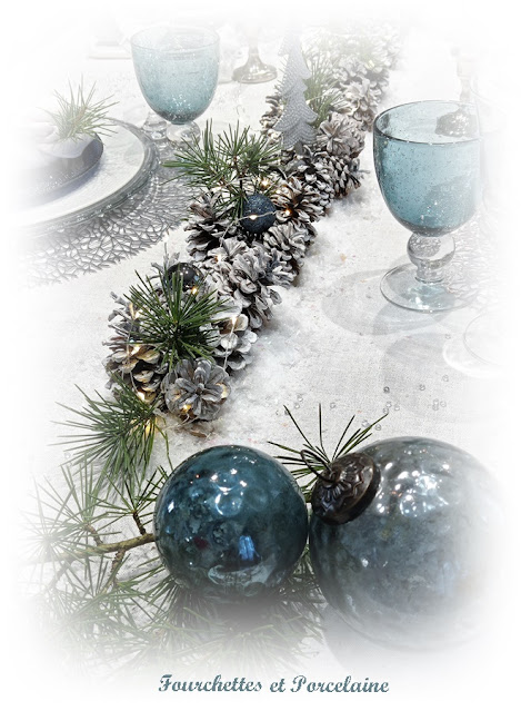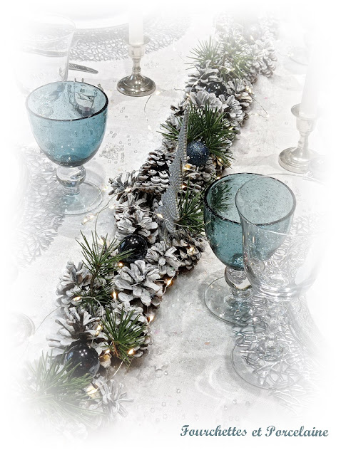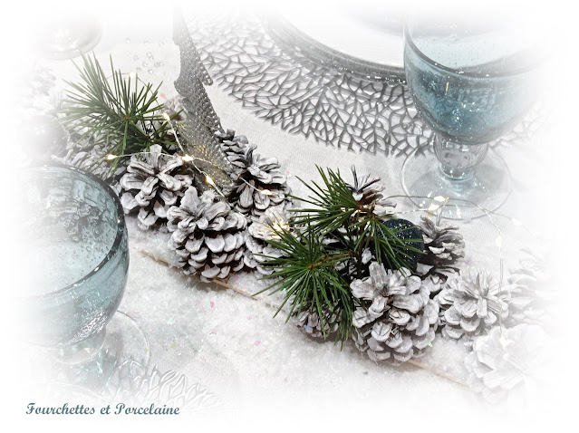 et un chemin de table en pommes de pin . . .
