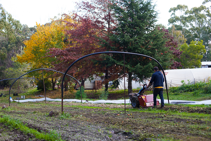 But this past season, maybe the fifth or sixth that we've grown in them, we felt like the crops struggled. Despite all the green manures and compost we've fed into the soil and the water we've irrigated it with, the fertility felt lacking. So over the next week or so we're going to take them down. We're going to plant oats and peas and barley and then dig them in, we're going to let the rain fall on the earth naturally, and then when it feels right we'll plant spring or summer crops. The poly tunnel we'll build somewhere else.