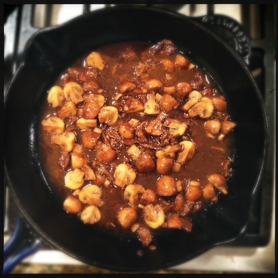 I couldn’t eat much of anything this terrible, sad weekend, but as my desire to cook has slowly returned, I’m turning to comfort foods. I made pan-seared steaks with a dried-and-fresh-mushroom pan sauce and it was just really nice to serve John and Nathan one of their favorite meals.