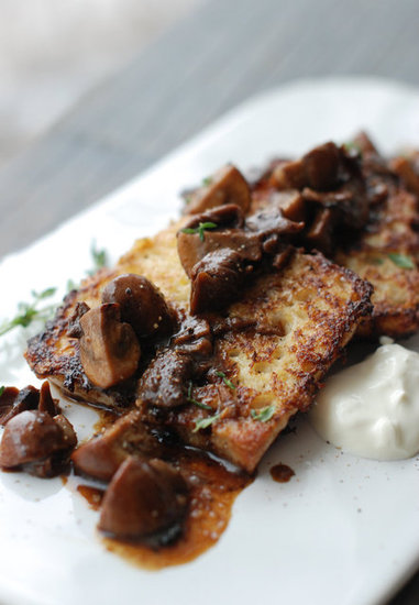 If you’re not a mushroom fan, try spinach sautéed with garlic, perhaps with a spot of sausage in the mix as well, perhaps with a pinch of red pepper flakes. Or thin slices of ham and a spoonful of braised beans. Or roasted squash and fried sage leaves. Or in the summer, slices of ripe tomato and crispy bacon. (Best. Thing. Ever.) French toast is rich, so a touch of acid and a shower of black pepper strike a delicious balance.