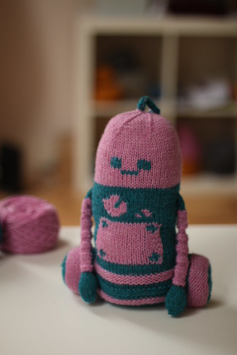 Space Robot is my first knitted toy! It took about three weeks to knit up, stuff and seam. But the moment it was done, Space Robot started having a life of his own.