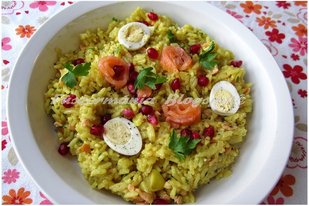 Kedgeree lazaccal és fürjtojással