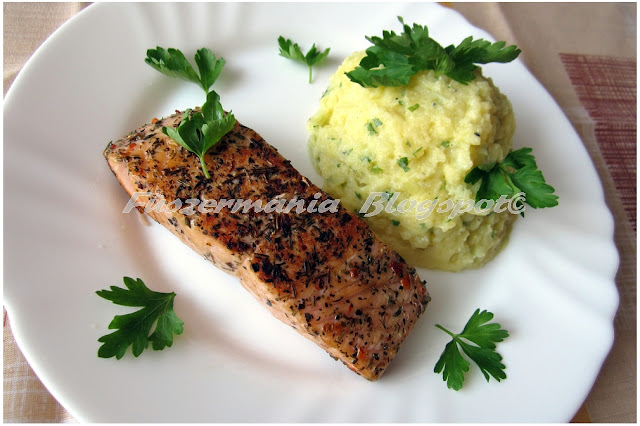 vékonyra szeletelt uborkával, retekkel is. A grillezett lazacszeletnek is