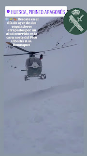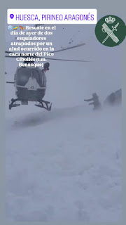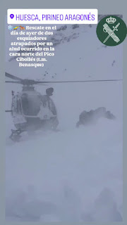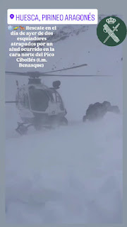 🏔️❄️🚁🐕🦺 Rescate en el día de ayer de dos esquiadores atrapados por un alud ocurrido en la cara norte del Pico Cibollés (t.m. Benasque)