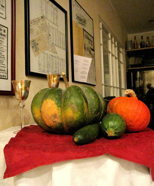 Gestern trafen sich die Mitglieder von Slow Food aus dem Ruhrgebiet im Weinrestaurant „Julius“ in Herne, um gemäß der Jahreszeit dem Kürbis zu widmen. Einige Slow-Foodies hatten ein köstliches, dreigängiges Menü zubereitet: eine Suppe aus Hokkaido-Kürbis und Karotten, verfeinert mit Kürbiskernöl und Kürbiskernen, Bratlinge von Muskat-Kürbis-Spänen und etwas Ei mit einem süß-sauer-scharfen Kürbis-Chutney sowie als Dessert ein Kürbis-Kompott mit Eis. Dazu schmeckte ein 2008er Sauvignon-Muscat Sec von der Domaine Juliette, ein Vin de Pays aus dem Languedoc. Zum leckeren Essen gab es Informationen rund um die Beerenfrucht, die wie Kartoffeln, Mais und Tomaten ihren Weg aus Amerika auf die europäische Speisekarte gefunden hat, und Tipps zur Zubereitung. Gart man den Kürbis nur einen Augenblick zu lange, zerfällt er. Aber vor allem bot der Abend ein geselliges und genussvolles Beisammensein.