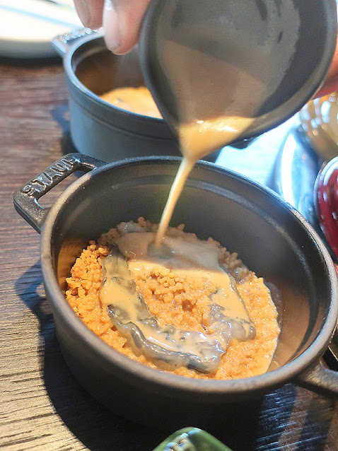 Zu einem kleinen mittäglichen Presse-Essen servierten Wiebke Meier und Jürgen Kettner die Gänge des aktuellen Menüs von der Karte. Die einzelnen Gerichte waren eindeutig österreichischen Ursprungs, doch die steirischen Grundprodukte wurden durch japanische Zutaten und Aromen delikat ergänzt. Die Geschmackskombinationen waren durchweg betörend, der Begriff Gasthausküche reines Understatement.