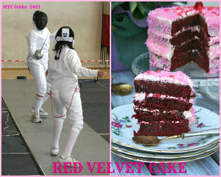 Cominciamo subito dalla base, io ho seguito fedelmente la ricetta di Stefania e dico a tutti quelli che vogliono provare di rifarla così, senza glutine, mi ha sorpreso, il mix di farine dona alla torta dei profumi in più, io l'avevo già provata, ma in versione "classica" mi ripeto, è da provare! Proprio perchè non sono brava con le torte farcite, sezionate ecc...io ho usato un piccolo trucchetto ;) ho usato una teglia rettangolare grande, in modo da ottenere una base alta più o meno 1 dito, controllando naturalmente il tempo di cottura, una volta cotta l'ho coppata con un coppapasta ed ho ottenuto dei dischi di torta tutti ugualmente alti, in questo caso ho scelto di farne delle monoporzioni, ma per una torta più grande lo stesso procedimento può essere fatto usando un cerchio da pasticceria. Passiamo alla crema...montate i tuorli con il cucchiaio di zucchero fino a che non siano spumosi e chiari, scaldate il latte di cocco, dopo averlo ben agitato, fino al limite dell'ebollizione, quindi aggiungetelo a filo, sempre mescolando ai tuorli montati, quindi trasferite la crema in un pentolino e torniamo sul fuoco...allora, questa praticamente è una crema inglese tirata col latte di cocco invece che con la panna, è molto delicata, strappa facilmente, se non vi sentite sicuri cuocete la crema a bagnomaria...sempre mescolando fino ad arrivare sugli 80°/85°, trasferite immediatamente la crema in una ciotola fredda, aggiungete il succo di lime e mescolatela per qualche minuto per farla stiepidire. Una volta fredda montate la panna e incorporatela con delicatezza alla crema fredda, passiamo al montaggio del dolce, vi ricordate il coppatasta di prima? Bene, io ho usato sempre lui per il montaggio del dolce, per cui, primo disco di red velvet sulla base, quindi uno strato consistente di crema al cocco e lime, quindi altro disco di torta a chiudere e ho messo in frigo a raffreddare...io ho montato solo uno strato di crema, ma nulla vieta di diminuire la dose di crema e fare 3 o 4 strati. Una volta ben fredda l'ho sformata e guarnita con delle striscioline di cocco secco per aggiungere un po di croccantezza e...buona torta a tutti :)